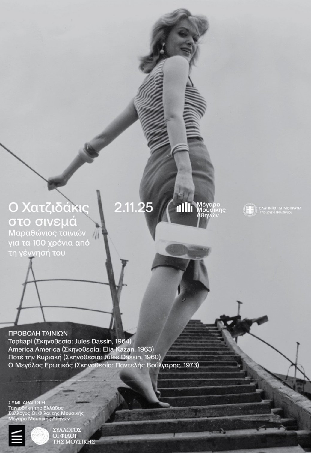 Πληροφορίες για την εκδήλωση, στην ιστοσελίδα του Μεγάρου: https://www.megaron.gr/event/o-chatzidakis-sto-sinema/