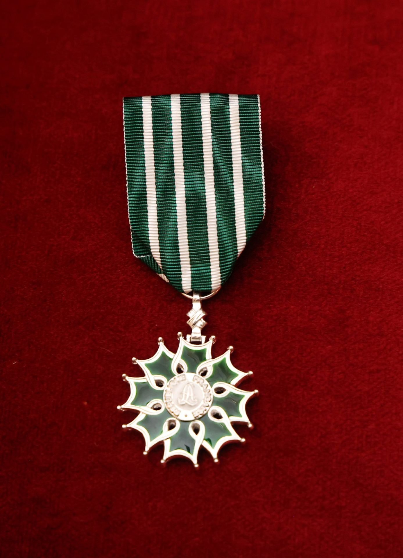 Ο τίτλος του Ιππότη του Τάγματος των Τεχνών και των Γραμμάτων (Chevalier dans l’order des Arts et des Lettres), μια από τις υψηλότερες τιμητικές διακρίσεις της Γαλλικής Δημοκρατίας, αποδίδεται σε προσωπικότητες που έχουν συνεισφέρει σημαντικά στον χώρο των τεχνών και των γραμμάτων.
