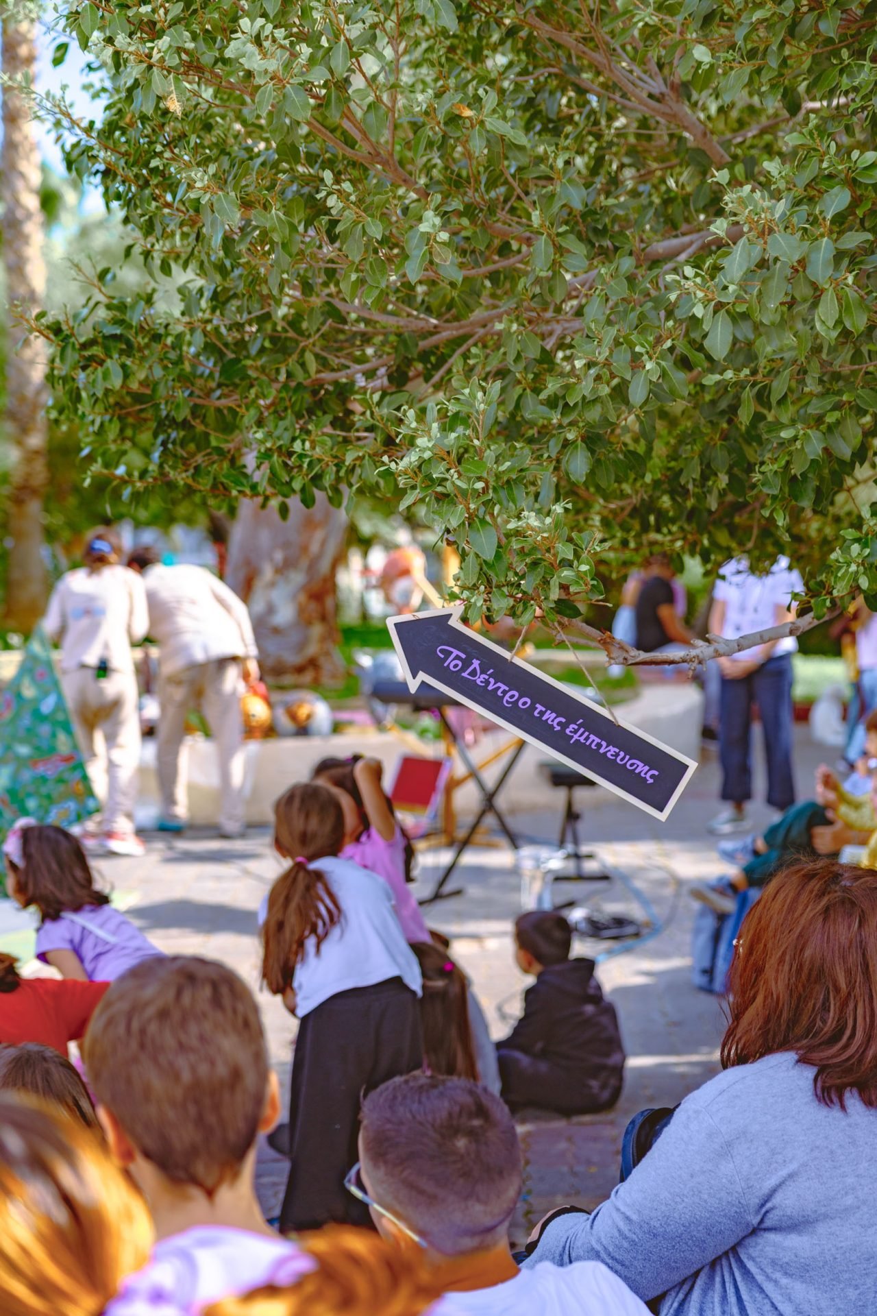 Ακολούθησε η θεατρική παράσταση «Η Έμπνευση μου είπε παραμύθια να σας πω!» από την ομάδα Piedi Sporchi, βασισμένη στο έργο του αγαπημένου συγγραφέα Βαγγέλη Ηλιόπουλου, που «γέμισε» τον χώρο με χιούμορ, συγκίνηση και παιδική φαντασία.