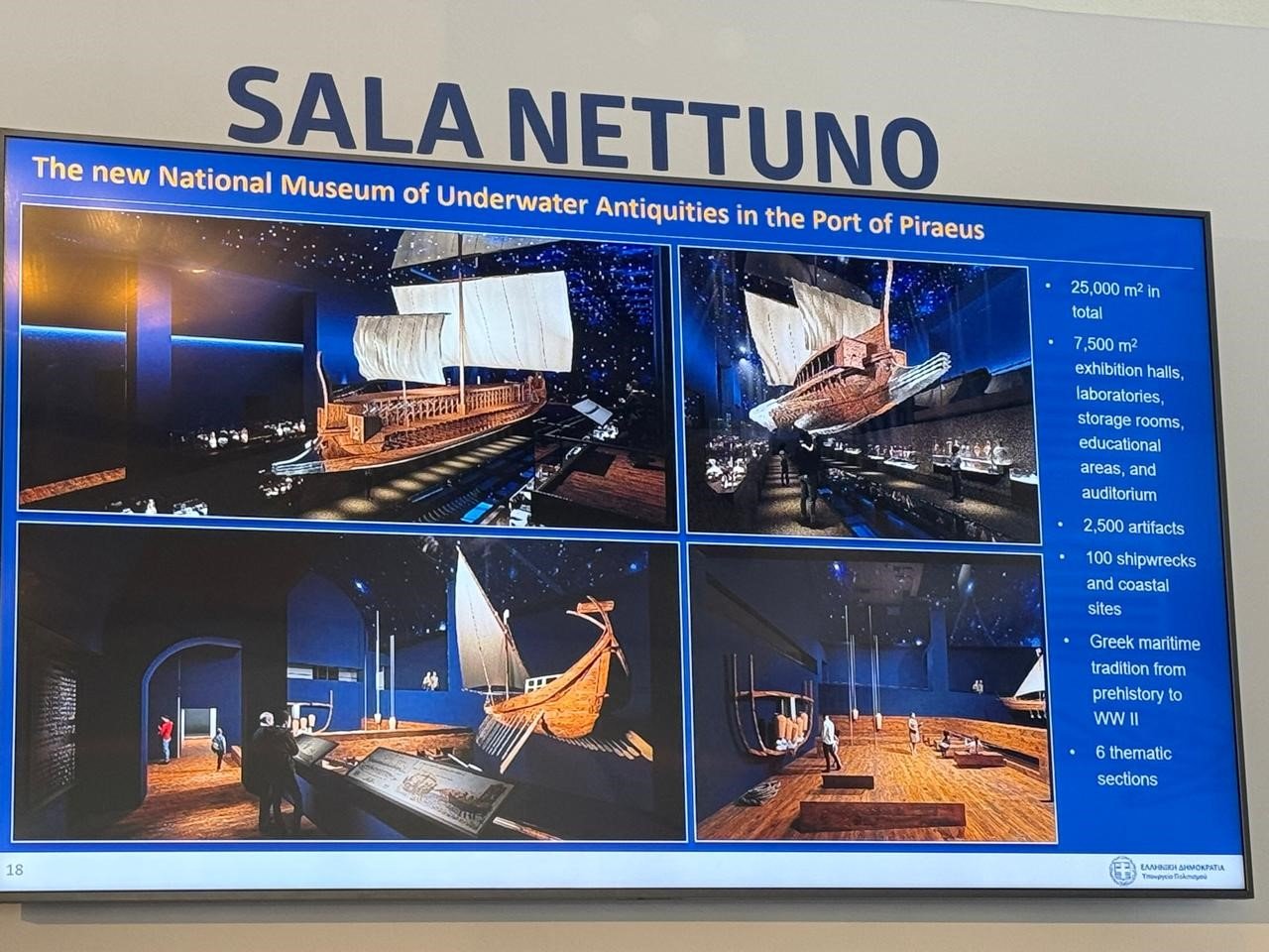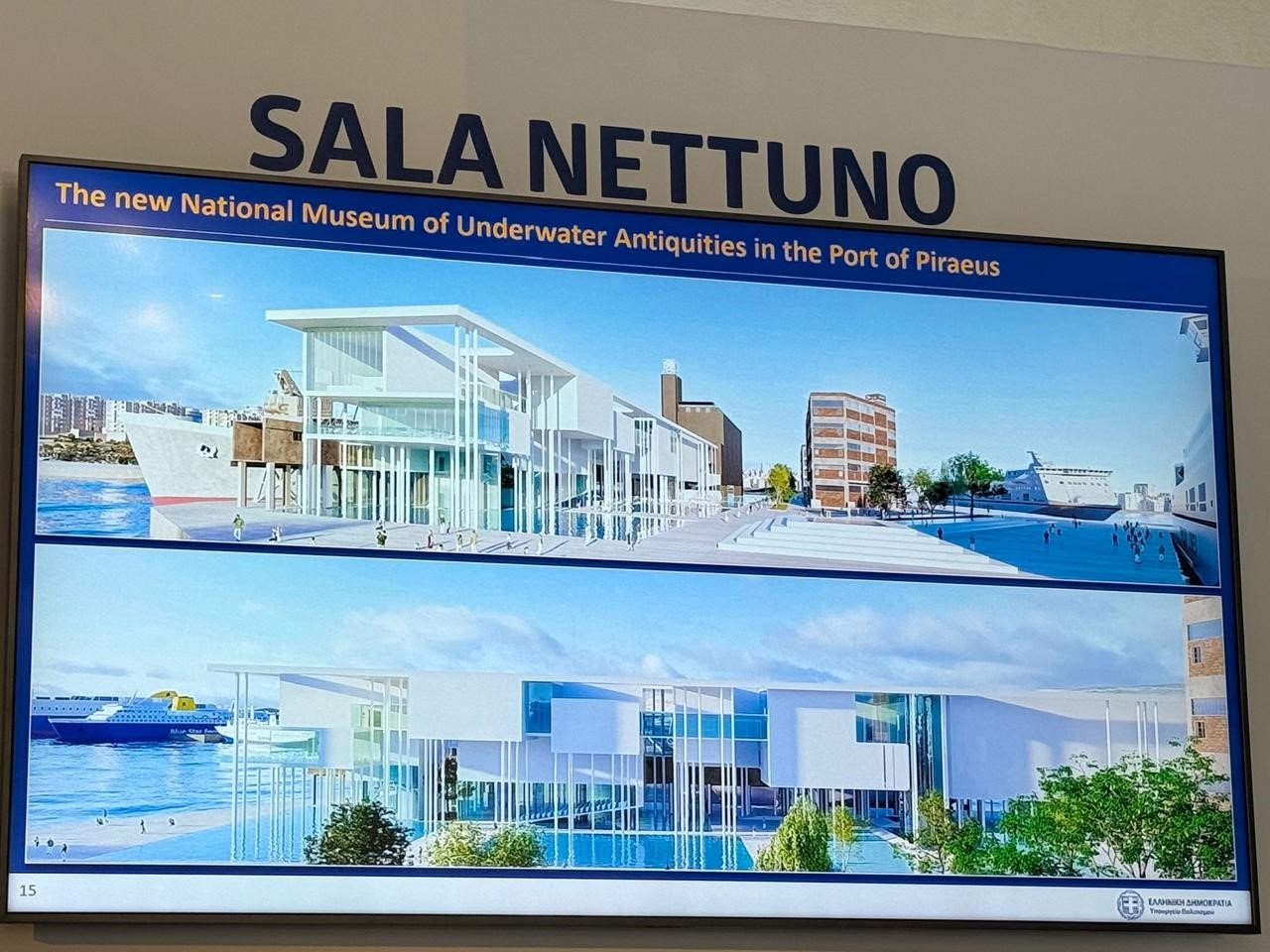 Εκτενή αναφορά έκανε στην ίδρυση του Εθνικού Μουσείου Εναλίων Αρχαιοτήτων, ενός εμβληματικού έργου το οποίο θα στεγαστεί στο κτήριο του ΣΙΛΟ, την π. σιταποθήκη της δεκαετίας του ’30 στο λιμάνι του Πειραιά. Η ίδρυση του Μουσείου, πέραν της ανάδειξής του σε τοπόσημο, στο μεγαλύτερο λιμάνι της χώρας μας, συμπληρώνει ένα σημαντικό κενό στο μουσειακό χάρτη της πατρίδας μας. Η Ελλάδα, κατ΄εξοχήν ναυτική χώρα, δεν διαθέτει μέχρι σήμερα ένα Μουσείο για την προβολή της ενάλιας πολιτιστικής της κληρονομιάς της, από την απώτατη προϊστορία ως τον Β΄ Παγκόσμιο Πόλεμο. Μέσα από περιβαλλοντικές και τεχνολογικές καινοτομίες, το Μουσείο ιδρύεται για να αποτελέσει σημείο αναφοράς, όχι μόνο στη μουσειολογική του σύλληψη και τα εκθέματα υψηλής αξίας που θα φιλοξενεί, αλλά και ως εκπαιδευτικό και συνεδριακό κέντρο, διεθνούς ακτινοβολίας.