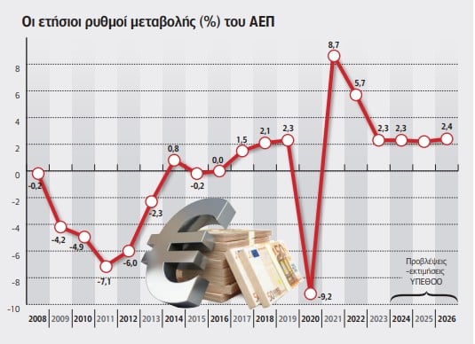 Η σταθερά θετική προοπτική ανάπτυξης της ελληνικής οικονομίας ενισχύεται από τις ενδείξεις για αυξημένη δυναμική των κλάδων του τουρισμού και των κατασκευών, από την επικείμενη εφαρμογή θεσμοθετημένων και εξαγγελθέντων μέτρων πολιτικής που θα συμβάλουν στην ενίσχυση του διαθέσιμου εισοδήματος των νοικοκυριών, από τις προσδοκίες επιτάχυνσης της εκτέλεσης του προγράμματος δημοσίων επενδύσεων, συμπεριλαμβανομένου του σκέλους που χρηματοδοτείται από το Ταμείο Ανάκαμψης, καθώς και από τις βελτιωμένες οικονομικές συνθήκες στην Ε.Ε. και το σταθερότερο κλίμα που διαμορφώνεται από τη συμφωνία μεταξύ Ε.Ε. και ΗΠΑ για τους δασμούς. Από την άλλη πλευρά, οι κίνδυνοι και οι αβεβαιότητες που απορρέουν στην παρούσα συγκυρία από το εξωτερικό περιβάλλον και τις γεωπολιτικές εξελίξεις παραμένουν σοβαροί, τονίζοντας την ανάγκη ενίσχυσης της ανθεκτικότητας της ελληνικής οικονομίας, μέσω μεταρρυθμίσεων και επενδύσεων για την ενδυνάμωση της παραγωγικής της βάσης».