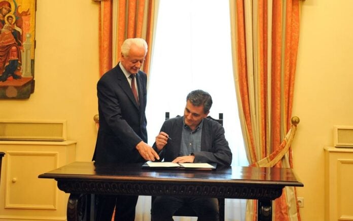 Με πολιτικό όρκο ο Ευκλείδης Τσακαλώτος ορκίστηκε ενώπιον του Προέδρου της Δημοκρατίας και του Πρωθυπουργού υπουργός Οικονομικών.