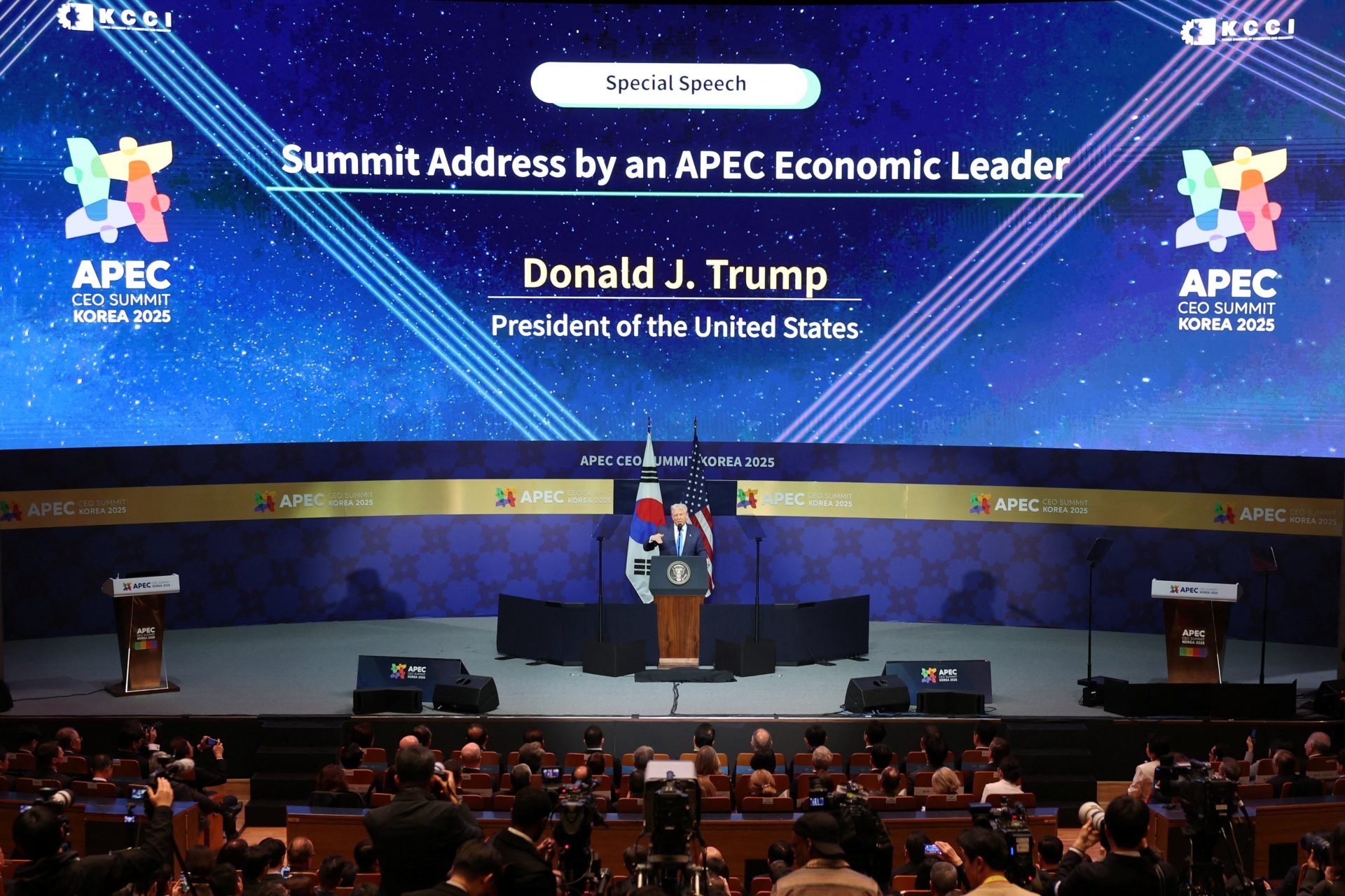Από το βήμα της Συνόδου του APEC στη Νότια Κορέα, ο Αμερικανός πρόεδρος υποσχέθηκε μια «χρυσή εποχή» για την αμερικανική οικονομία και αναβίωση της βιομηχανικής παραγωγής και του ναυπηγοκατασκευαστικού κλάδου.
