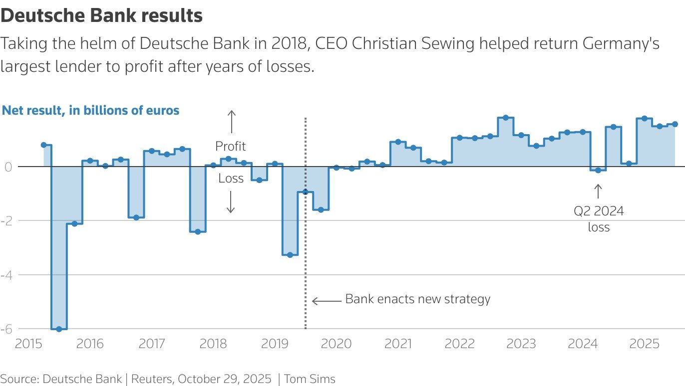 Τα στοιχεία αυτά έρχονται καθώς η Deutsche ολοκληρώνει ένα τριετές σχέδιο και προσπαθεί να επιτύχει μια σειρά στόχων που ορισμένοι αναλυτές αμφισβήτησαν ότι θα επιτύγχανε.