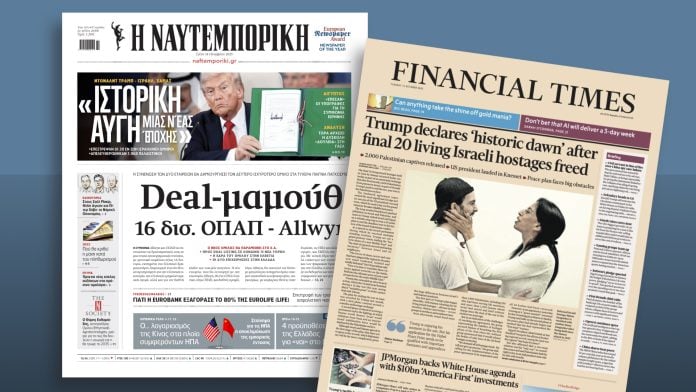 Απόλυτη σύμπτωση του πρώτου της τίτλου για τη συμφωνία ειρήνευσης στη Λωρίδα της Γάζας είχε προ ημερών η «Ν» με τους Financial Times.