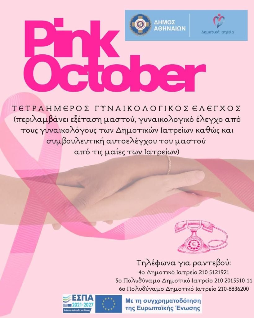 Παράλληλα, στα Δημοτικά Ιατρεία του Δήμου Αθηναίων θα διεξαχθεί τετραήμερος ολοκληρωμένος γυναικολογικός έλεγχος, που περιλαμβάνει εξέταση μαστού από μαστολόγο γιατρό των Ιατρείων, γυναικολογική εξέταση από τους γυναικολόγους των Ιατρείων και συμβουλευτική αυτοεξέτασης μαστού από μαίες.