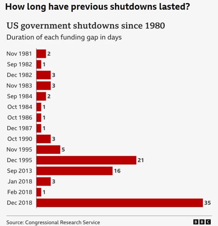 Πριν από τον Τραμπ, το ρεκόρ κρατούσε ο Μπιλ Κλίντον με ένα shutdown 21 ημερών το 1995, όταν οι Ρεπουμπλικανοί, που είχαν αποκτήσει τον έλεγχο του Κογκρέσου, ζητούσαν περιορισμό των δαπανών για το Medicare.