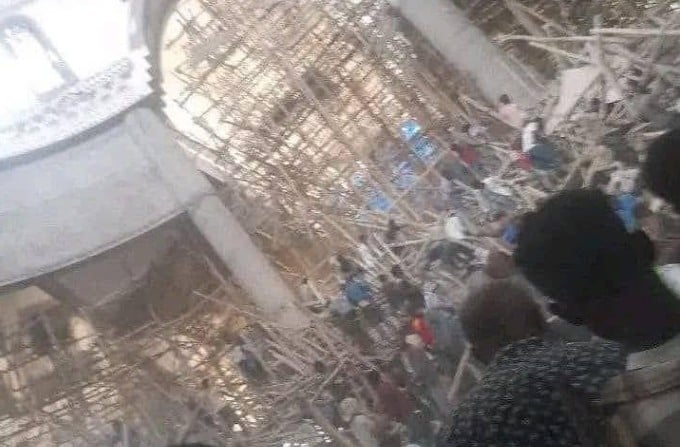 Σύμφωνα με τη δημόσια ραδιοτηλεόραση EBC, η σκαλωσιά κατέρρευσε γύρω στις 7.45 τοπική ώρα. Φωτογραφίες που ανάρτησε η EBC στο Facebook δείχνουν μια πελώρια σκαλωσιά, φτιαγμένη από μακριά και λεπτά ξύλα, πριν από την καταστροφή, και στη συνέχεια πολλούς ανθρώπους να προσπαθούν να βοηθήσουν τους τραυματίες μέσα στο κτίριο.