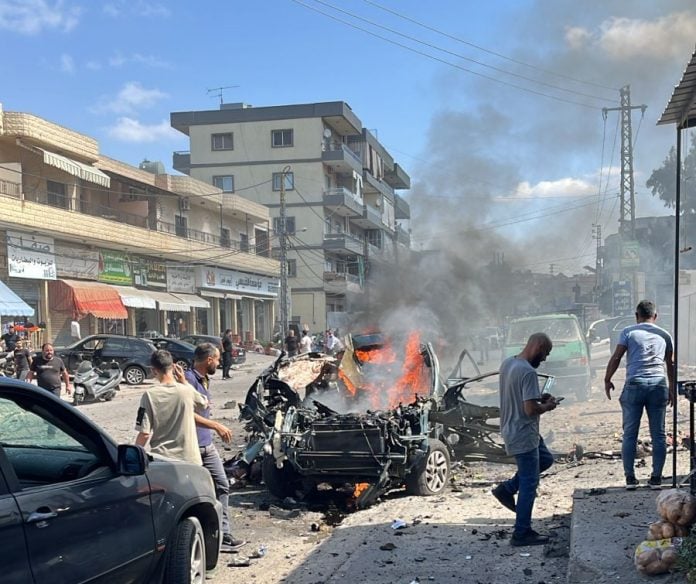 غارة من مسيّرة إسرائيلية تستهدف سيارة على طريق زبدين في منطقة النبطية pic.twitter.com/5cIOluHHZF