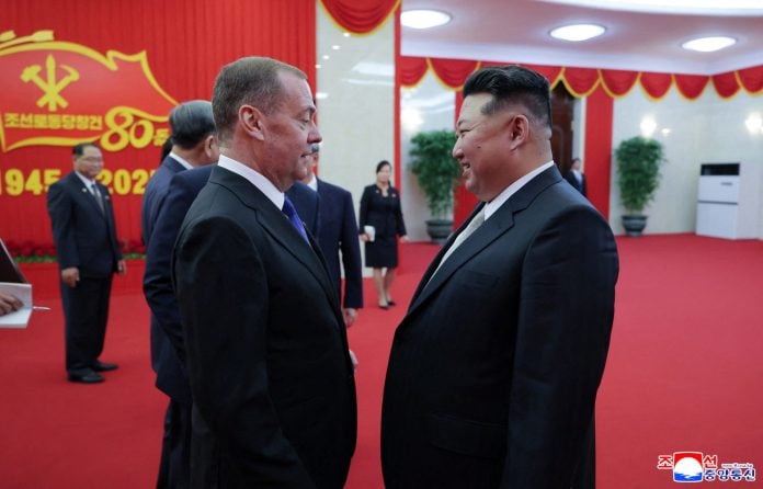 Ο Ρώσος πρώην πρόεδρος Ντμίτρι Μεντβέντεφ, ο οποίος σήμερα είναι αντιπρόεδρος του Συμβουλίου Ασφαλείας της Ρωσίας, συναντήθηκε με τον Βορειοκορεάτη πρόεδρο Κιμ Γιόνγκ Ουν κατά την διάρκεια της επίσκεψης του στην Βόρειο Κορέα, μετέδωσαν τα ρωσικά κρατικά ειδησεογραφικά πρακτορεία.