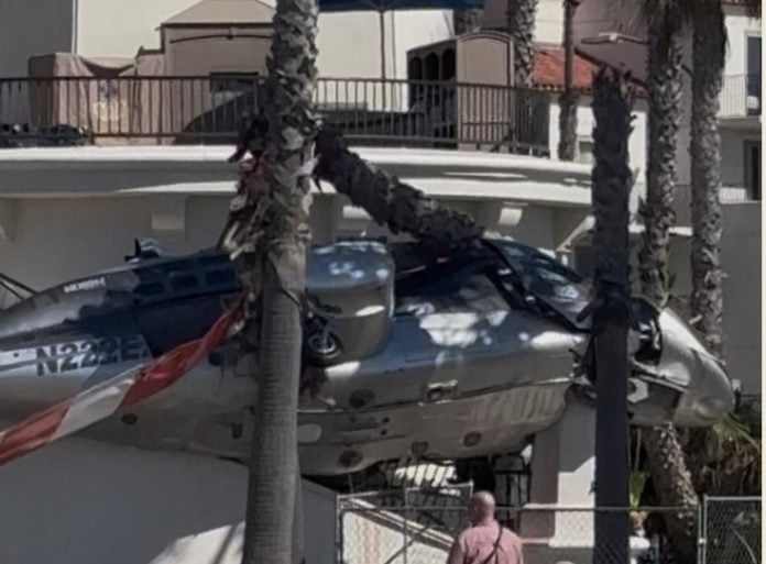Ένα ελικόπτερο που πετούσε μέσα σε κατοικημένη περιοχή δίπλα σε μεγάλη και δημοφιλή παραλία της νότιας Καλιφόρνιας άρχισε ξαφνικά να χάνει τον έλεγχο πέφτοντας τελικά πάνω σε σπίτια και φοίνικες, ενώ οι λουόμενοι παρακολουθούσαν τρομοκρατημένοι.