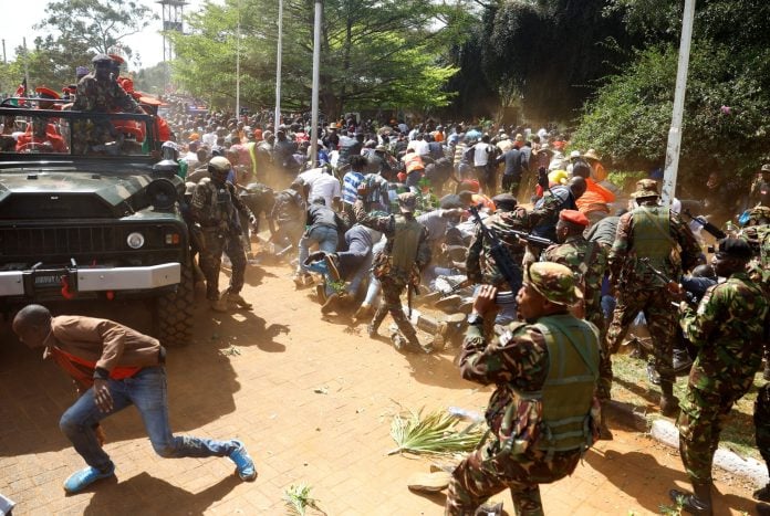 Δημοσιογράφοι του AFP ανέφεραν ότι τουλάχιστον τρία άτομα τραυματίστηκαν στο στάδιο Κασαράνι στο Ναϊρόμπι, όταν οι δυνάμεις ασφαλείας πυροβόλησαν για να διαλύσουν το πλήθος. Ένας άνδρας εθεάθη να κείται ακίνητος στο έδαφος, αιμόφυρτος στο κεφάλι.