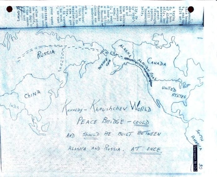 From the Soviet JFK docs released by @RepLuna: Kennedy–Khrushchev World Peace Bridge “could and should be built between Alaska and Russia at once.”