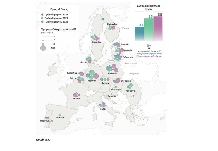 Τα 95 έργα διπλής χρήσης-στρατιωτικής κινητικότητας που επιλέχθηκαν για χρηματοδότηση από την Ε.Ε. σε 21 διαφορετικά κράτη μέλη της Ε.Ε.Επαρκές δίκτυο