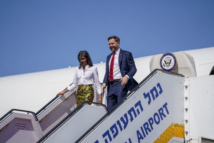 Στο αεροδρόμιο τον υποδέχτηκαν ο Ισραηλινός υπουργός Δικαιοσύνης Γιάριβ Λέβιν, ο Πρέσβης του Ισραήλ στις ΗΠΑ Γιεχίελ Λάιτερ και ο Πρέσβης των ΗΠΑ Μάικ Χάκαμπι, παραχώρησε γεύμα εργασίας με τους κορυφαίους βοηθούς του Λευκού Οίκου, Στιβ Γουίτκοφ και Τζάρεντ Κούσνερ, σύμφωνα με το γραφείο του Βανς.