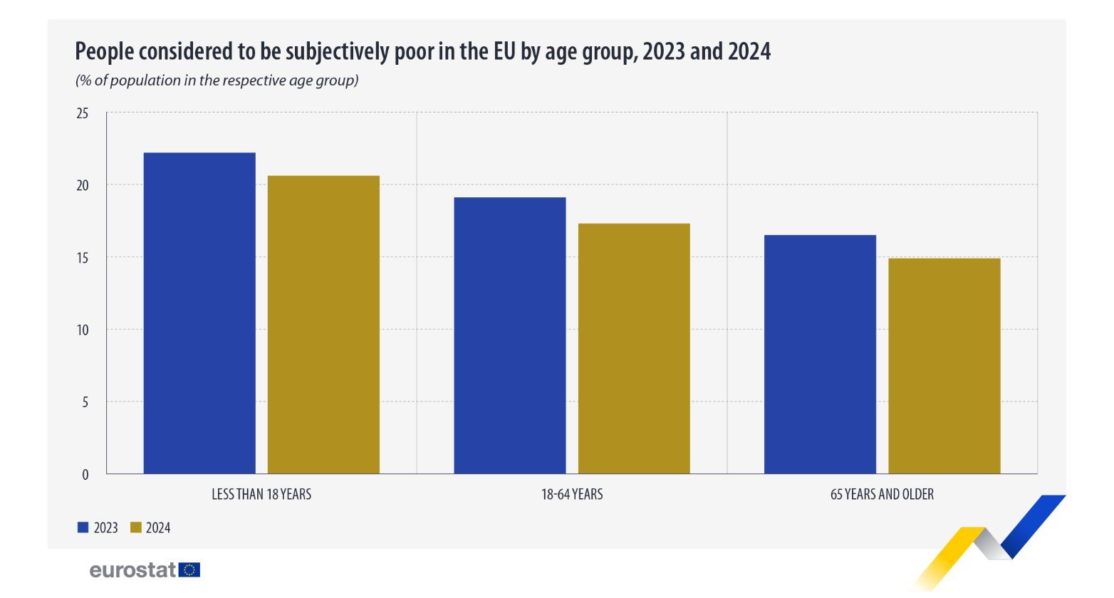 Η έρευνα παρατήρησε πτώση του ποσοστού υποκειμενικής φτώχειας σε όλες τις ηλικιακές κατηγορίες στην Ευρωπαϊκή Ένωση το 2024.