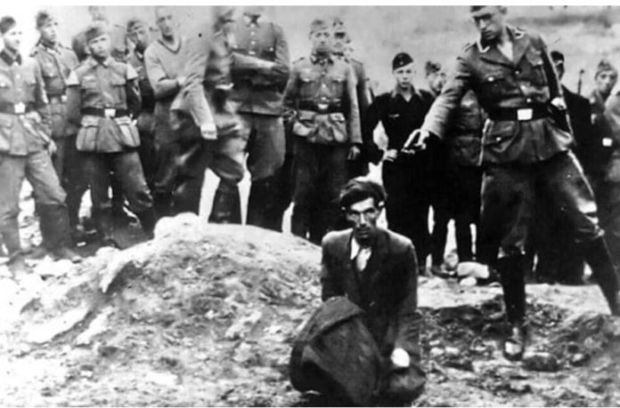 Ένας άνδρας με μακρύ παλτό, πυκνά μαλλιά και βυθισμένα μάγουλα γονατίζει στην άκρη ενός μαζικού τάφου, παραδομένος στη μοίρα του. Τα δεκάδες πτώματα δίπλα του και ο οπλισμένος ναζί που έχει στρέψει το όπλο του στο κεφάλι του δεν αφήνουν περιθώρια αμφιβολίας – ο άντρας ξέρει πως η ζωή του έχει φτάσει στο τέλος της. Μέχρι σήμερα η ταυτότητα του θύματος παραμένει άγνωστη – ωστόσο αυτή του εκτελεστή θεωρείται πλέον κατά 99% βέβαιη.