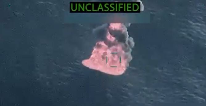 Στα πλάνα διακρίνονται δύο βάρκες να κινούνται με ταχύτητα μέσα στο νερό. Η μία φαίνεται να είναι φορτωμένη με μεγάλη ποσότητα δεμάτων. Και οι δύο ξαφνικά εκρήγνυνται και τυλίγονται στις φλόγες.