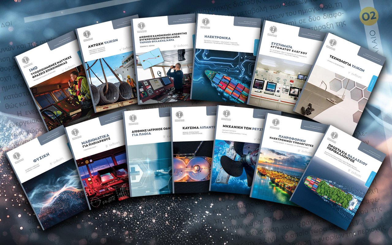 Βιβλία που κυκλοφορούν φέτος σε επικαιροποιημένη έκδοση για Πλοιάρχους και Μηχανικούς είναι η Πληροφορική-Η/Υ (β’ έκδοση), που εξοικειώνει τους σπουδαστές των ΑΕΝ Πλοιάρχων και Μηχανικών με έννοιες της Πληροφορικής και των Η/Υ, καθώς και με τις σημερινές εφαρμογές τους στη ναυτιλία και η Φυσική (δ’ έκδοση), η οποία εμπλουτίστηκε με ασκήσεις κλιμακούμενης δυσκολίας, για την πληρέστερη κάλυψη περισσότερων ενοτήτων της θεωρίας, με σκοπό να κατανοήσουν οι σπουδαστές στοιχειώδεις έννοιες της Φυσικής, απαραίτητες για την εργασία τους στα πλοία. Επικαιροποιήθηκε επίσης το βοήθημα IMO-Τυποποιημένες Ναυτικές Φράσεις Επικοινωνίας (γ’ έκδοση), σκοπός του οποίου είναι η προσπέλαση των δυσκολιών στις ναυτικές επικοινωνίες μέσω της χρήσης απλών και σαφών τυποποιημένων ναυτικών φράσεων.
