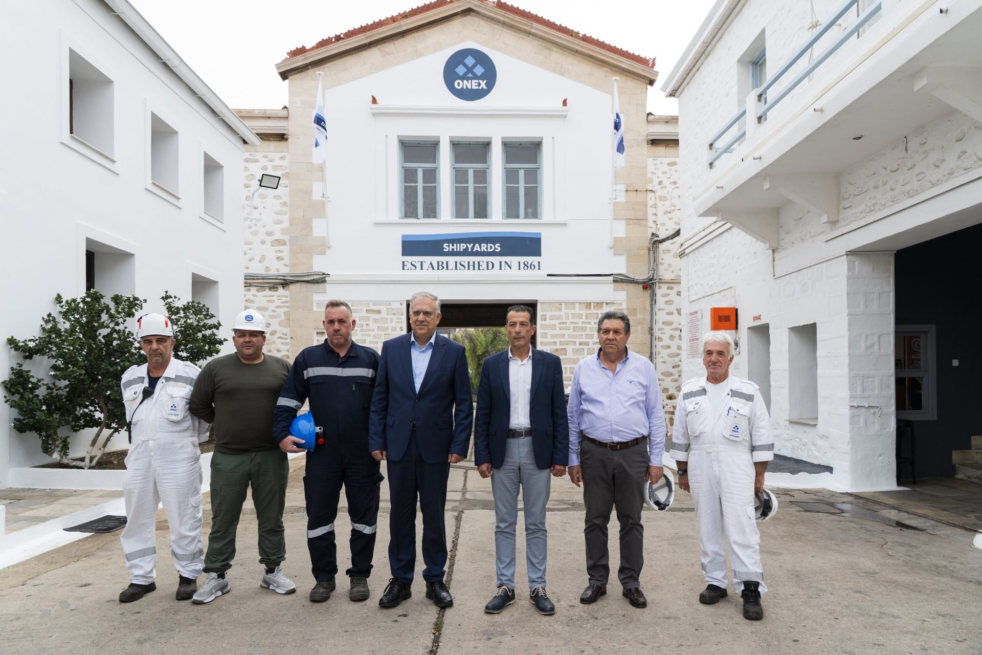 Επίσκεψη του υπουργού Ανάπτυξης Τάκη Θεοδωρικάκου στα Ναυπηγεία της ΟΝΕΧ στη Σύρο