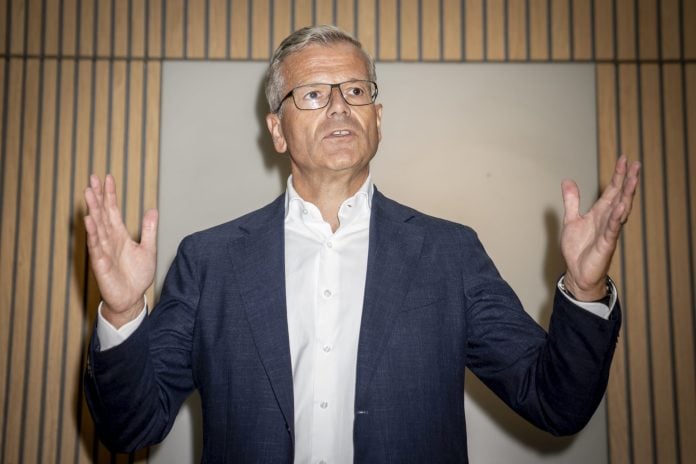 Πίσω από το εγχείρημα βρίσκεται η Maersk (στη φωτ. ο CEO Vincent Clerc), η οποία δοκιμάζει ένα μίγμα με 10% αιθανόλη στις τεράστιες δίχρονες μηχανές των πλοίων της, ύψους τεσσάρων ορόφων.