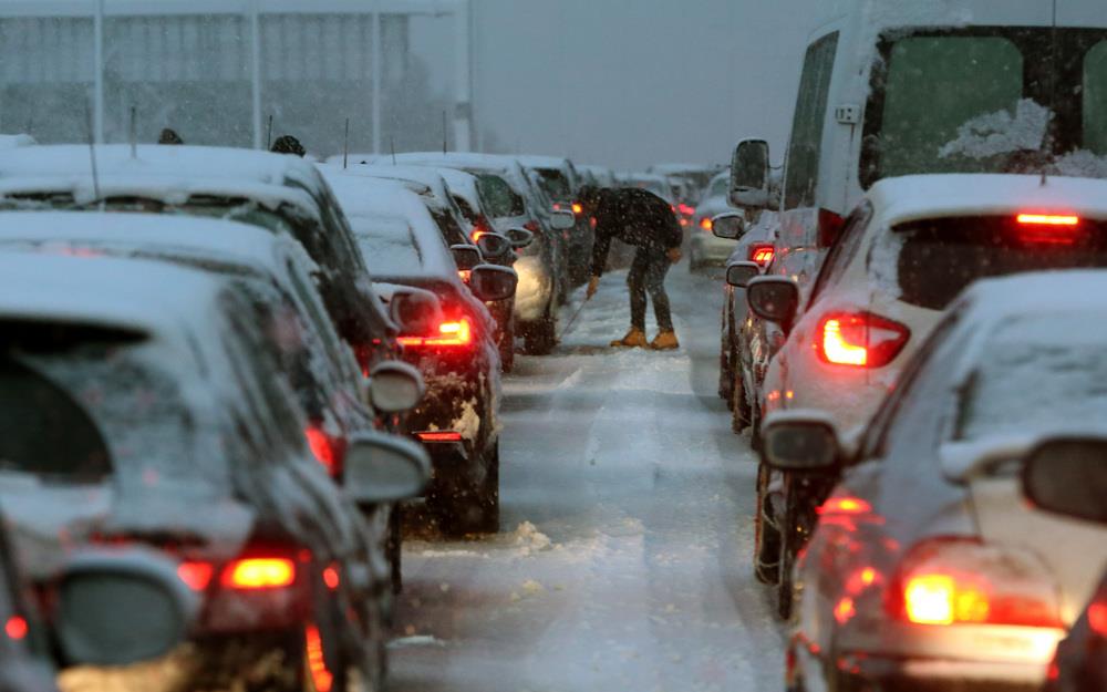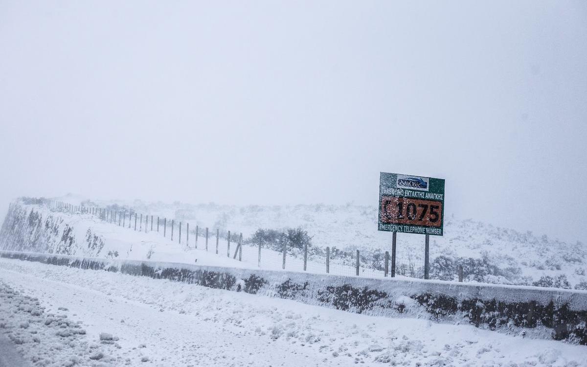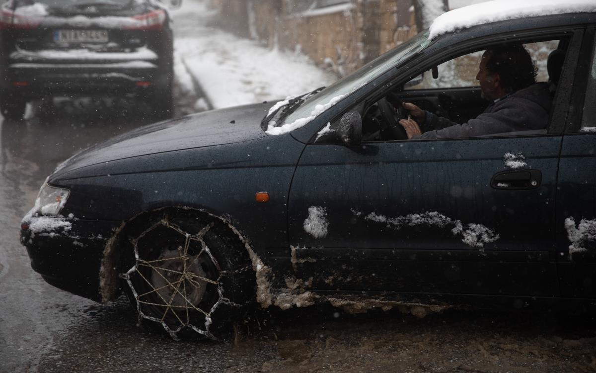 Σε λευκό φόντο και τη Δευτέρα μεγάλο μέρος της χώρας, όπου πολλά σημεία του οδικού δικτύου παραμένουν αποκλεισμένα ή η κυκλοφορία των οχημάτων διεξάγεται μόνο με αντιολισθητικές αλυσίδες.