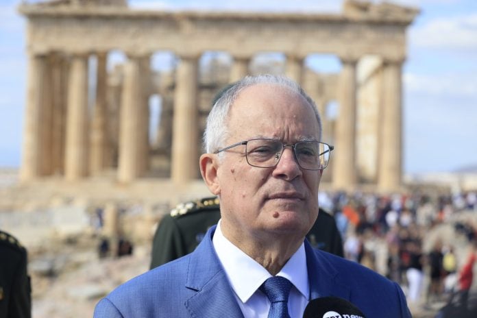 Στην έπαρση της σημαίας στον Ιερό Βράχο της Ακρόπολης παρέστη το πρωί της Κυριακής ο Πρόεδρος της Δημοκρατίας.
