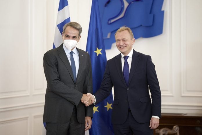 Συνάντηση με τον Ευρωπαίο Επίτροπο για τον Προϋπολογισμό, την Καταπολέμηση της Απάτης και τη Δημόσια Διοίκηση Πιοτρ Σεραφίν είχε ο πρωθυπουργός στο Μέγαρο Μαξίμου.