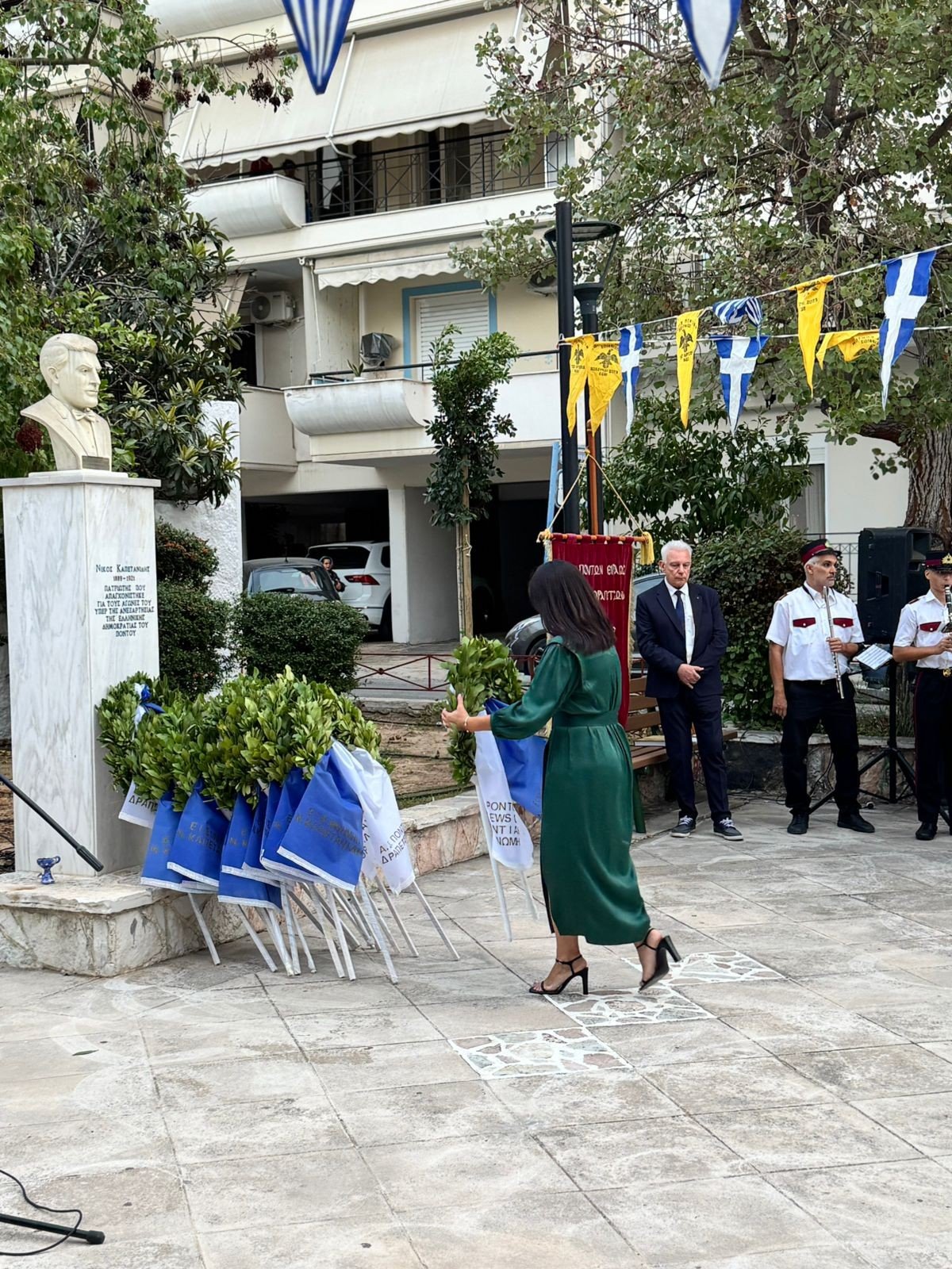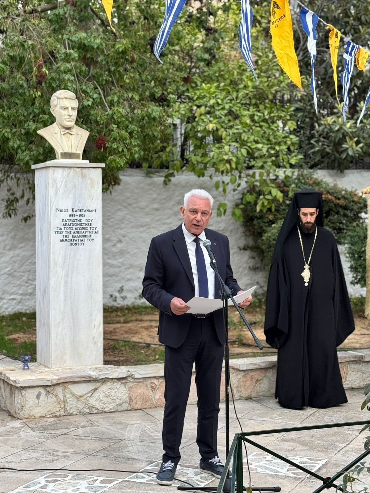 Ακολούθησε η κατάθεση στεφάνων στην προτομή του εθνικού ήρωα Νίκου Καπετανίδη, από τους Δήμαρχο Κερατσινίου-Δραπετσώνας Χρήστο Βρεττάκο, τη Λένα Νίτσου-Ψαθά, την καθηγήτρια Ειρήνη Πετρίδου και τη μαθήτρια Μαρία Κολοβού εκ μέρους του 2ου Γυμνασίου Δραπετσώνας, τον Αθανάσιο Αθανασιάδη εκ μέρους του Συνδέσμου Ποντιακών Σωματείων Νοτίου Ελλάδος και Νήσων της ΠΟΕ, τον Πρόεδρο του Εξωραϊστικού Πολιτιστικού Συλλόγου «Θυμαιτάδαι» Γεώργιο Δρακόπουλο και την Αντιπρόεδρο Ρούσα Μιχαλοπούλου, τον Ταμία Γεώργιο Καραγιαννάκη εκ μέρους της Ένωσης Κρητών Κερατσινίου-Δραπετσώνας «Το Αρκάδι», τον Πρόεδρο της Ένωσης Ποντίων Σουρμένων Γιώργο Σαραφίδη, τον Αντιπρόεδρο Χρήστο Μανουσαρίδη εκ μέρους της Ένωσης Ποντίων Περάματος, τον Πρόεδρο της Ένωσης Ποντίων Νικαίας – Κορυδαλλού Θοδωρής Μακρίδης, τον Αθλητικό Σύλλογο Ποντίων Δραπετσώνας, τη Διευθύντρια της ιστοσελίδας pontosnews.gr Χριστίνα Χαφουσίδου και την Πρόεδρο της Ένωσης Ποντίων Πειραιώς-Κερατσινίου-Δραπετσώνας Αναστασία Ποιμενίδη-Ιωαννίδη.