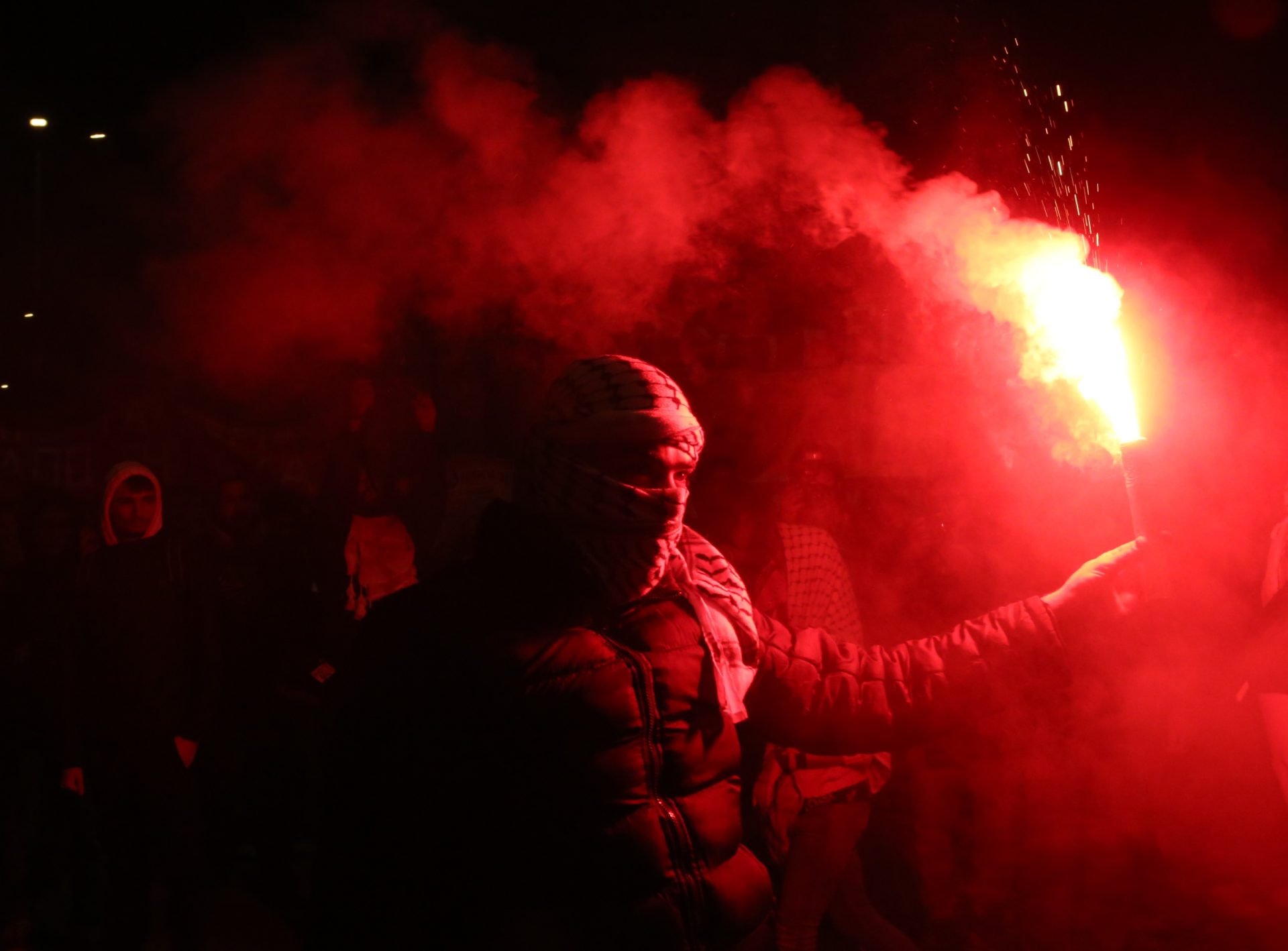 Ενώ η πορεία, στην οποία συμμετείχαν πάνω από 3.000 διαδηλωτές βρισκόταν σε εξέλιξη, μια ομάδα ατόμων άρχισε να κάνει ρίψη βεγγαλλικών και αντικειμένων προς μια διμοιρία ΜΑΤ, η οποία απάντησε με χρήση δακρυγόνων και χειροβομβίδων κρότου λάμψης.