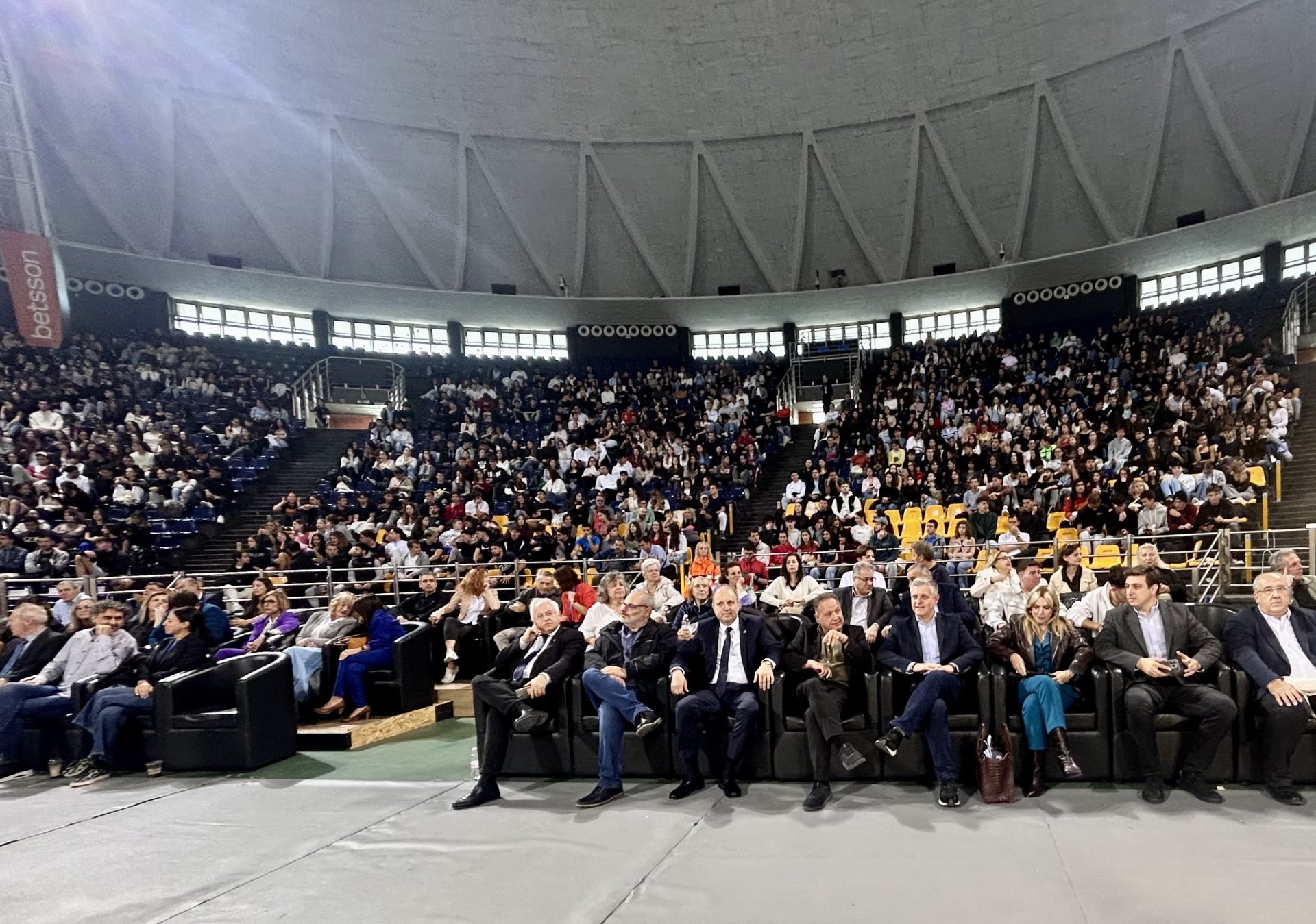 Με όρους μπασκετικούς και παραπέμποντας στις ένδοξες στιγμές που έχουν γραφτεί για τον ελληνικό αθλητισμό μέσα στο Παλαί ντε Σπορ, ο πρύτανης του ΑΠΘ, καθ. Κυριάκος Αναστασιάδης καλωσόρισε τους νέους φοιτητές με ένα χειροκρότημα: «Θέλω να ρίξετε μια ματιά γύρω σας, να στήσετε αυτί για να ακούσετε τις ιαχές και τα χειροκροτήματα που αντηχούν ακόμα σε αυτή την ιστορική σάλα. Θέλω να νιώσετε τον παλμό του μεγάλου παιχνιδιού, να νιώσετε την αγωνία του κρίσιμου αγώνα. Θέλω να δείτε ποιες και ποιοι γεμίζουν τις κερκίδες του Παλαί. Κοιτάξτε δεξιά και αριστερά σας, δείτε ποιους έχετε απέναντι και δίπλα σας, δείτε αυτά τα παιδιά που μέχρι χθες έπαιζαν στις μικρές κατηγορίες και σήμερα αλλάζουν λίγκα, δείτε αυτά τα χθεσινά παιδιά που σήμερα μπαίνουν να παίξουν με τους μεγάλους! Και μπαίνουν με αξιώσεις! Κοιτάξτε καλά και τώρα πείτε μου, αν έχετε ποτέ χειροκροτήσει μια επιτυχία, μια νίκη, από αυτόν το χώρο.