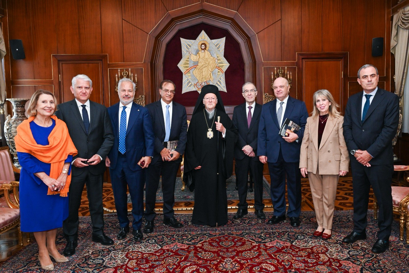 Νωρίτερα την ίδια ημέρα ο Παναγιώτατος Οικουμενικός Πατριάρχης κ.κ. Βαρθολομαίος, παρέθεσε γεύμα προς τιμή των δωρητών, στο πλαίσιο του οποίου τόνισε: «Τό Οἰκουμενικόν Πατριαρχεῖον, μέ εὐήκοον οὖς διά τούς κραδασμούς τῆς ἱστορίας καί τάς ὑπαρξιακάς ἀναζητήσεις καί ἀνάγκας τοῦ ἀνθρώπου, μακράν ἀπό ἐφημέρους στόχους καί χρησιμοθηρικάς θεωρήσεις, διάκονος τῆς ἀλληλεγγύης, τῆς εἰρήνης καί τῆς δικαιοσύνης, μέ ἀπόλυτον σεβασμόν πρός τό ἀνθρώπινον πρόσωπον καί τήν ἀκεραιότητα τῆς δημιουργίας, τονίζει τήν ἀνάγκην μιᾶς βιωσίμου οἰκονομίας, ἡ ὁποία θα συνδυάζῃ οἰκονομικάς στρατηγικάς μέ πνευματικάς ἀρχάς καί ἠθικά κριτήρια. Προφανέστατα, ὁ τρόπος μέ τόν ὁποῖον βλέπομεν τόν ἄνθρωπον, τήν προέλευσιν, τόν σκοπόν καί τό νόημα τῆς ὑπάρξεώς του, προσδιορίζει καί τό πῶς φανταζόμεθα τό μέλλον τῶν κοινωνιῶν μας. Ὁ ἄνθρωπος εἶναι περισσότερον ἀπό homo oeconomicus, περισσότερον ἀπό ἀπρόσωπος καταναλωτική μονάς. Ἀπευθύνομεν πρός ὅλους τούς παράγοντας τῆς οἰκονομικῆς ζωῆς τήν προτροπήν, νά μή παραβλέπουν εἰς τάς ἀποφάσεις των τάς πνευματικάς ἀξίας, ἡ ἀθέτησις τῶν ὁποίων παράγει λίαν ἀρνητικάς συνεπείας. Ὡς γνωστόν, ὁ ὕπατος τῶν φιλοσόφων Πλάτων διετύπωσε, κατά τῆς ἀρχῆς τοῦ σοφιστοῦ Πρωταγόρου «Πάντων χρημάτων μέτρον ἄνθρωπος», τήν περίφημον ρῆσιν «Θεός πάντων χρημάτων μέτρον», παραπέμψας εἰς τό Ὑπερβατικόν, τό Ἀπόλυτον, ὡς σταθερόν σημεῖον ἀναφορᾶς τῶν ἀνθρωπίνων πραγμάτων. Καί τό προοίμιον τοῦ Συντάγματος τῆς Ἑλλάδος «Εἰς τό ὄνομα τῆς ἁγίας καί ὁμοουσίου καί ἀδιαιρέτου Τριάδος», αὐτήν τήν ἀλήθειαν ἐκφράζει. Μέ αὐτάς τάς σκέψεις καί τά αἰσθήματα, ἐκφράζομεν ἅπαξ ἔτι τήν χαράν μας διά τήν παρουσίαν σας εἰς τό Κέντρον τῆς Ὀρθοδοξίας. Σήμερον τό ἀπόγευμα θά ἔχωμεν τήν εὐκαιρίαν νά σᾶς εὐχαριστήσωμεν διά την καθοριστικήν συμβολήν σας εἰς τήν ἀνακαίνισιν καί τήν ἀντισεισμικήν θωράκισιν τοῦ κτηρίου τοῦ Ζωγραφείου μας. Ὁ παντεπόπτης καί παντευεργέτης Θεός τῶν θαυμασίων, νά σκέπῃ ἐσᾶς καί τούς ἀγαπημένους σας καί νά εὐλογῇ τά ἔργα καί τήν ὑψηλήν ἀποστολήν σας.»