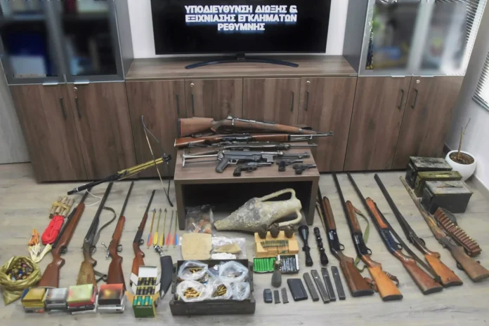 Ένας 77χρονος συνελήφθη το πρωί της Πέμπτης στην Κρήτη, σε περιοχή του δήμου Αγίου Βασιλείου, από αστυνομικούς της Υποδιεύθυνσης Δίωξης και Εξιχνίασης Εγκλημάτων Ρεθύμνου, κατηγορούμενος για παραβάσεις της Νομοθεσίας περί όπλων και Περί Προστασίας Αρχαιοτήτων και της εν γένει Πολιτιστικής Κληρονομιάς.