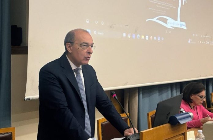 Στην ομιλία του, ο Πρέσβης παρουσίασε τους στόχους του 1ου Διεθνούς Συνεδρίου για την Ιταλοφωνία, που θα πραγματοποιηθεί στη Ρώμη στις 19 Νοεμβρίου με την υποστήριξη του Αντιπροέδρου του Υπουργικού Συμβουλίου και Υπουργού Εξωτερικών, κ. Tajani, και στοχεύει στη δημιουργία μιας γλωσσικής κοινότητας της ιταλικής.
