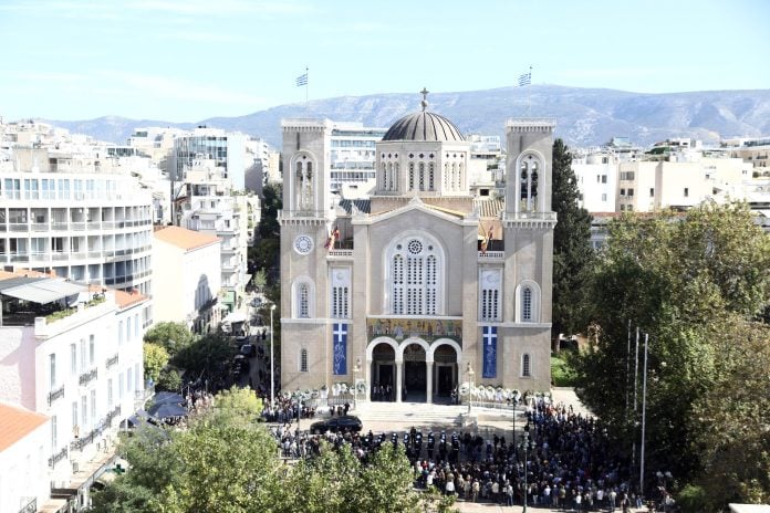 Με το «τι έπαιξα στο Λαύριο» (ίσως πιο γνωστό ως ‘δεν ξέρω τι να παίξω στα παιδιά’) και τη «Συννεφούλα», παιανιζόμενα από τη μπάντα του Πολεμικού Ναυτικού, με την οποία ο Διονύσης Σαββόπουλος είχε ουκ ολίγες φορές συνεργαστεί –όπως στην θαυμάσια συναυλία του 2012 όπου ερμήνευσε Χατζιδάκι) η σορός του σπουδαίου τραγουδοποιού οδηγήθηκε εκτός Μητρόπολης προκειμένου να ακολουθήσει η ταφή στο Α΄ Νεκροταφείο Αθηνών.