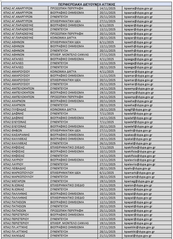 Δηλώσεις συμμετοχής από αύριο 30 Οκτωβρίου, στη διεύθυνση https://www.dypa.gov.gr/workshops.