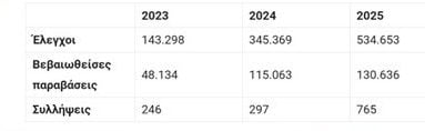 - Οι βεβαιώσεις παραβάσεων αυξήθηκαν κατά +139% το 2024 και επιπλέον +13% το 2025.
