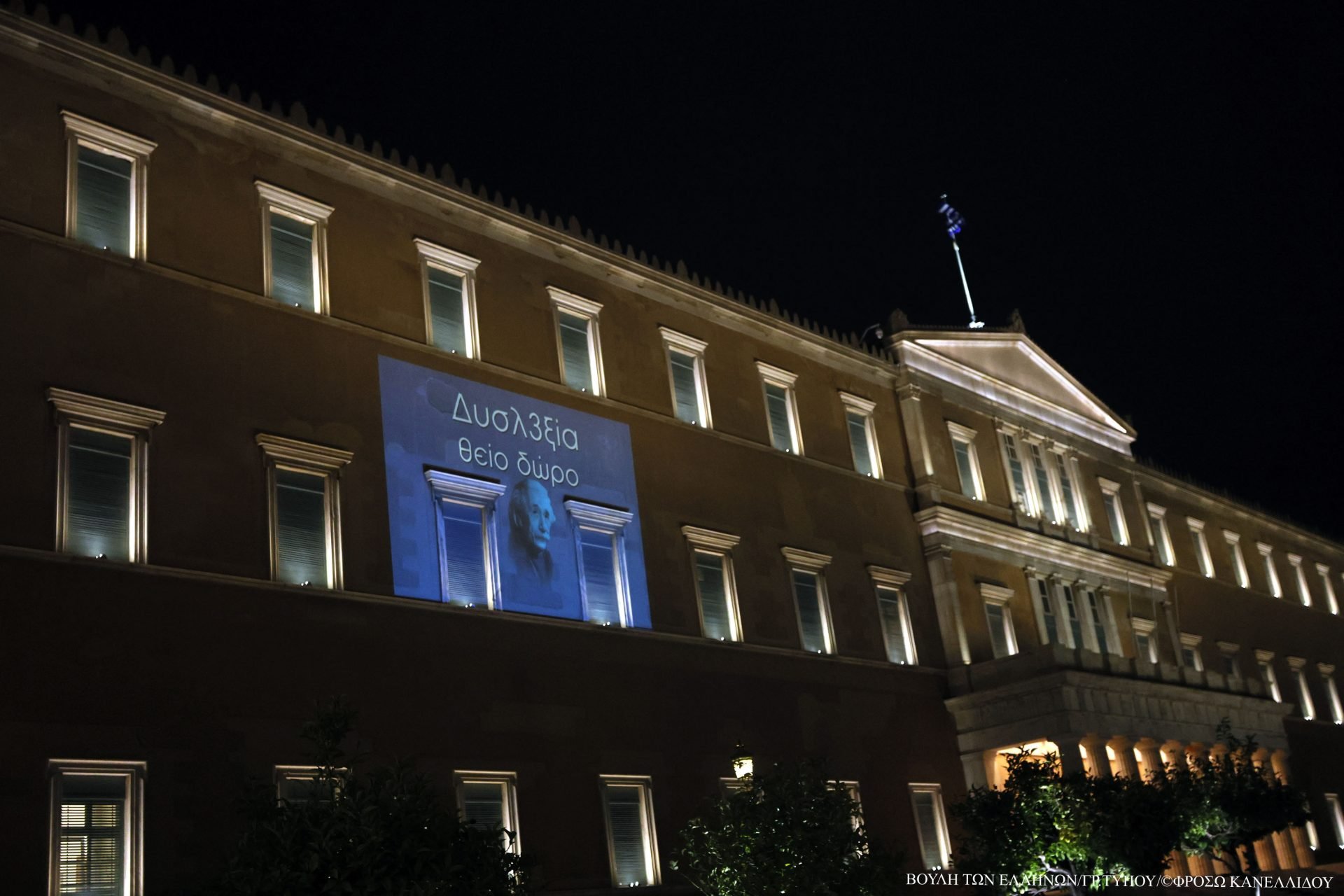 Το Κοινοβούλιο φωτίστηκε με το χρώμα μπλε-τιρκουάζ, το διεθνές σύμβολο ευαισθητοποίησης για τη δυσλεξία. Η φωταγώγηση υλοποιήθηκε σε σύμπραξη με τον Πανελλήνιο Σύλλογο Δυσλεξίας και Διάσπασης Προσοχής, ο οποίος, μέσω επίσημων στοιχείων, αναδεικνύει την αναγκαιότητα της ενημέρωσης καθώς ένα στα δέκα παιδιά εμφανίζει δυσλεξία και μαθησιακές δυσκολίες.
