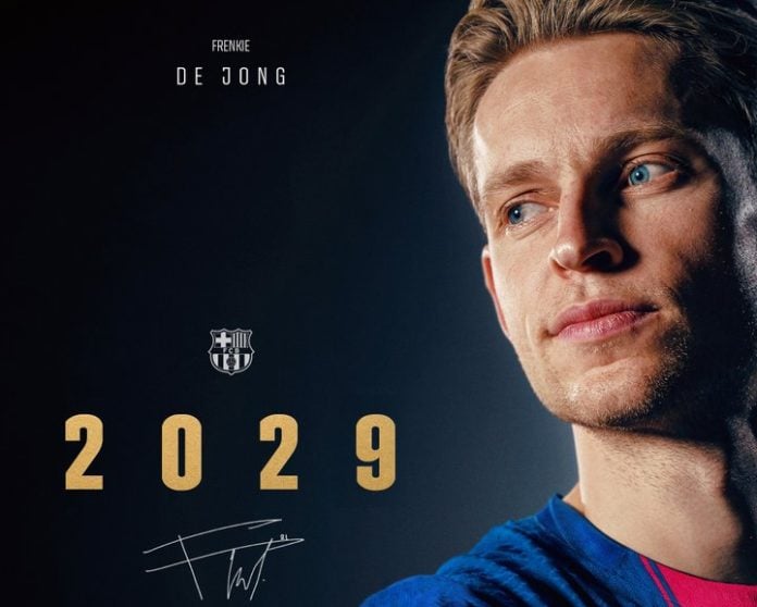 «Η Μπαρτσελόνα είναι στην ευχάριστη θέση να ανακοινώσει την επέκταση του συμβολαίου του Ολλανδού μέσου Φρένκι ντε Γιονγκ στον σύλλογο. Ο παίκτης είναι πλέον δεσμευμένος με την Μπαρτσελόνα μέχρι το 2029», ανακοίνωσαν οι Καταλανοί.