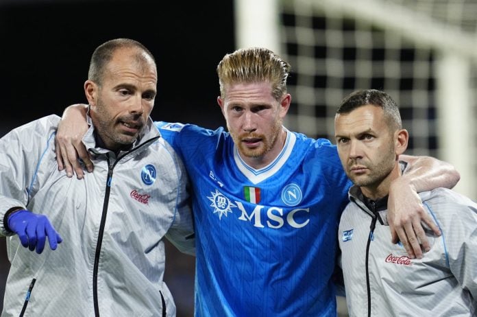 «Μετά τον τραυματισμό που υπέστη κατά τη διάρκεια του αγώνα με την Ίντερ το Σάββατο, ο Κέβιν Ντε Μπρόινε υποβλήθηκε σε εξετάσεις που αποκάλυψαν ότι έχει μια μεγάλης κλίμακας βλάβη στον δικέφαλο μηριαίο του δεξιού μηρού του», ανέφερε η Νάπολι σε ανακοίνωσή της.